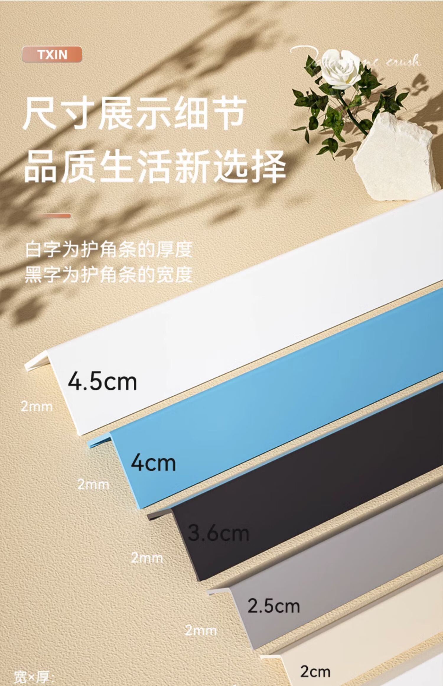 WO8 Extremely Narrow PVC Wall Corner Covers Protection Strip Safety Baby Edge Corner Guards External Corner Edge Bumper Guards Wall Edge Bumper Guards Living Room Decoration Edge Safety Bumpers Stripe Apricot Beige - Width 2.5cm - Thickness 2mm 1.5m