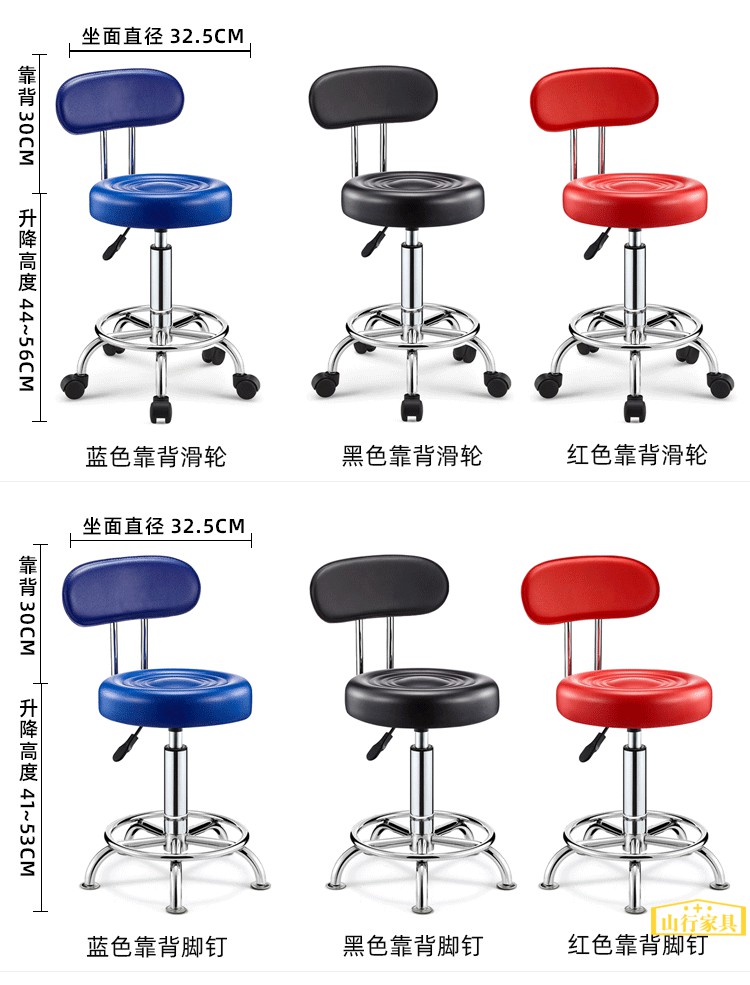 Baocai Beauty Bench, Bar Chair, Modern Simple Bar Chair, Rotating Lift Backrest, Household High Foot Bench, Round Bench, Beauty Bench, Swivel Chair [Elevated High Foot Bench], Three Ring Bench Face - Black [Image Price Brand Quotation]-
