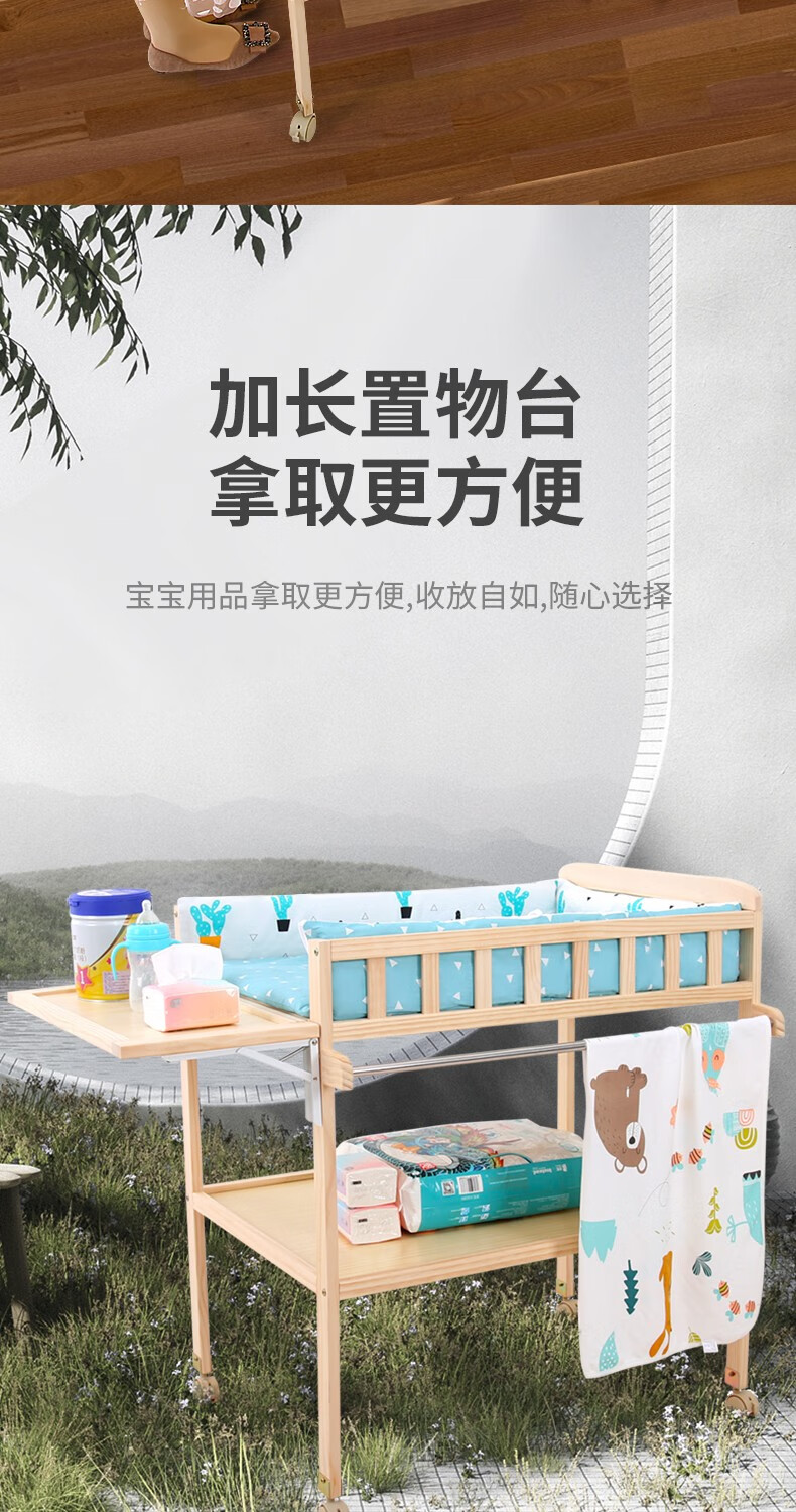 Baby Happy Changing Table Baby Changing Station Newborn Baby Changing Table Massage Baby Care Bathing Table Solid Wood Multi functional Mobile Organizing Shelf Solid Wood Changing Table+Pink Forest Care Pad