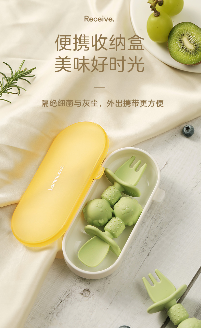 [Buckle SLX183GRN] Buckle LOC&LOCK Silicone Spoon Baby Spoon Non toxic Baby Feeding Set Fork Spoon Set Neonatal Supplementary Feeding Spoon Baby Learning to Eat Spoon Short Handle Training Spoon [Quote Price Evaluation]-