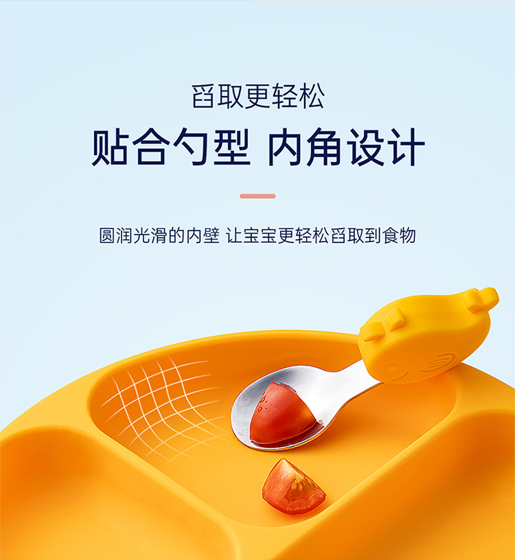 [Ingham Silicone Dining Plate] Ingham Children's Dining Plate Baby Silicone Divided Dining Plate Non toxic baby feeding set Baby feeding set Integrated Anti drop Baby Dining Plate Fork Spoon Set (Silicone Dining Plate Yellow+Fork Spoon Car Yellow) [M...