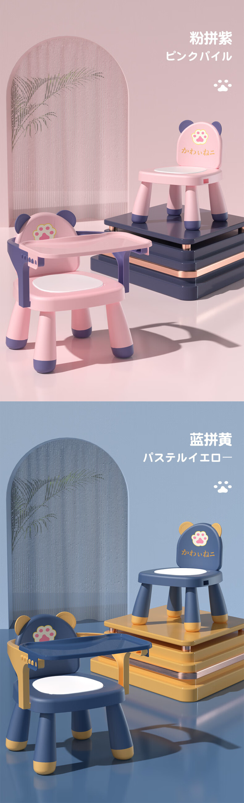 Children's back chair, baby call chair, baby chair, household dining plastic Baby Highchair, cartoon small chair, stool, blue and white, high feet, shaped (without a meal plate) [Image price, brand quotation]-