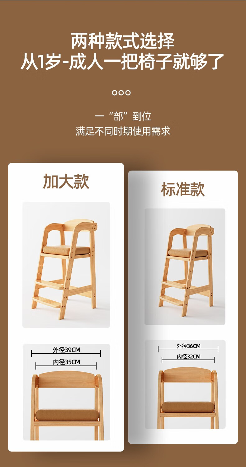 [Selection of Good Items] Children's Growth Chair Children's Baby Highchair Wood Big Baby Home High Bench Solid Wood Dining! Standard: Oak Varnish Color [Image Price Brand Quotation]-