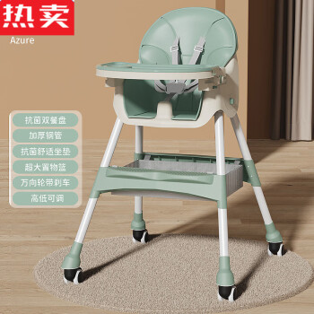 Jingmao Children's Baby Highchair Liftable Baby Learning Chair Dining Table BB Dining High Foot Chair Portable Baby Highchair Portable Navy Blue Cushioned Wheels+Double Deck Dining Plate [Image Price Brand Quote]-