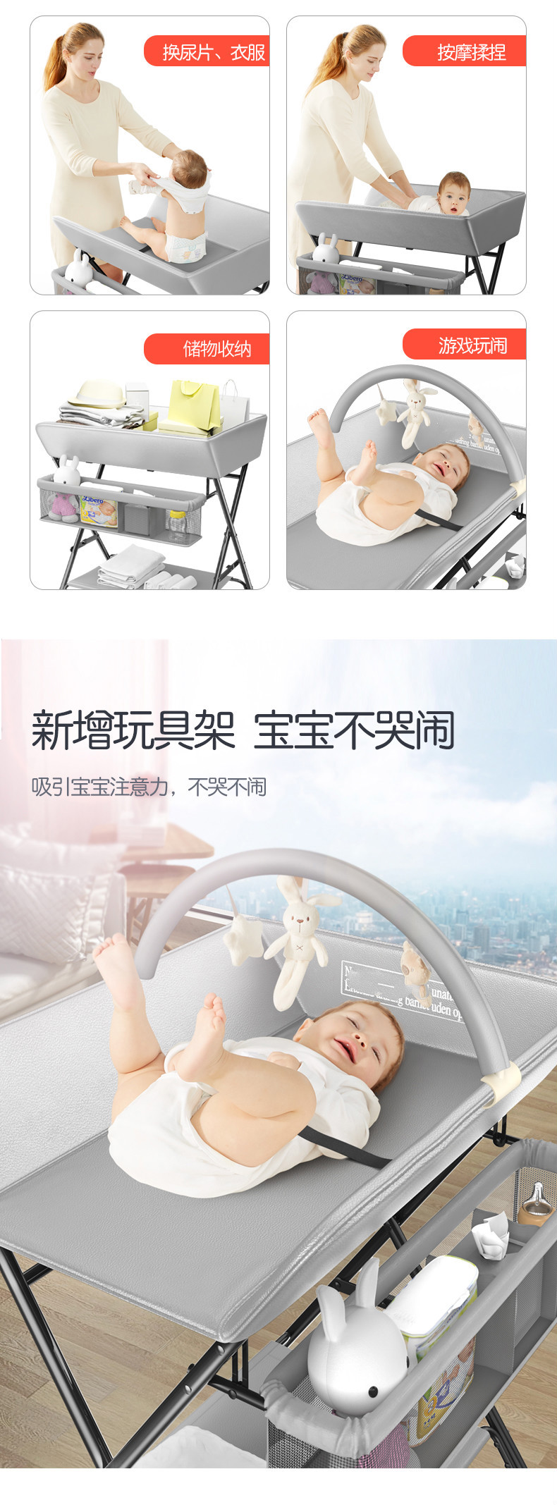 Changing table Baby changing station Portable multi-function bed bath table Baby changing wet massage Baby care table gray [Basic model+cloth table top without storage basket] [Image price Brand quotation]-