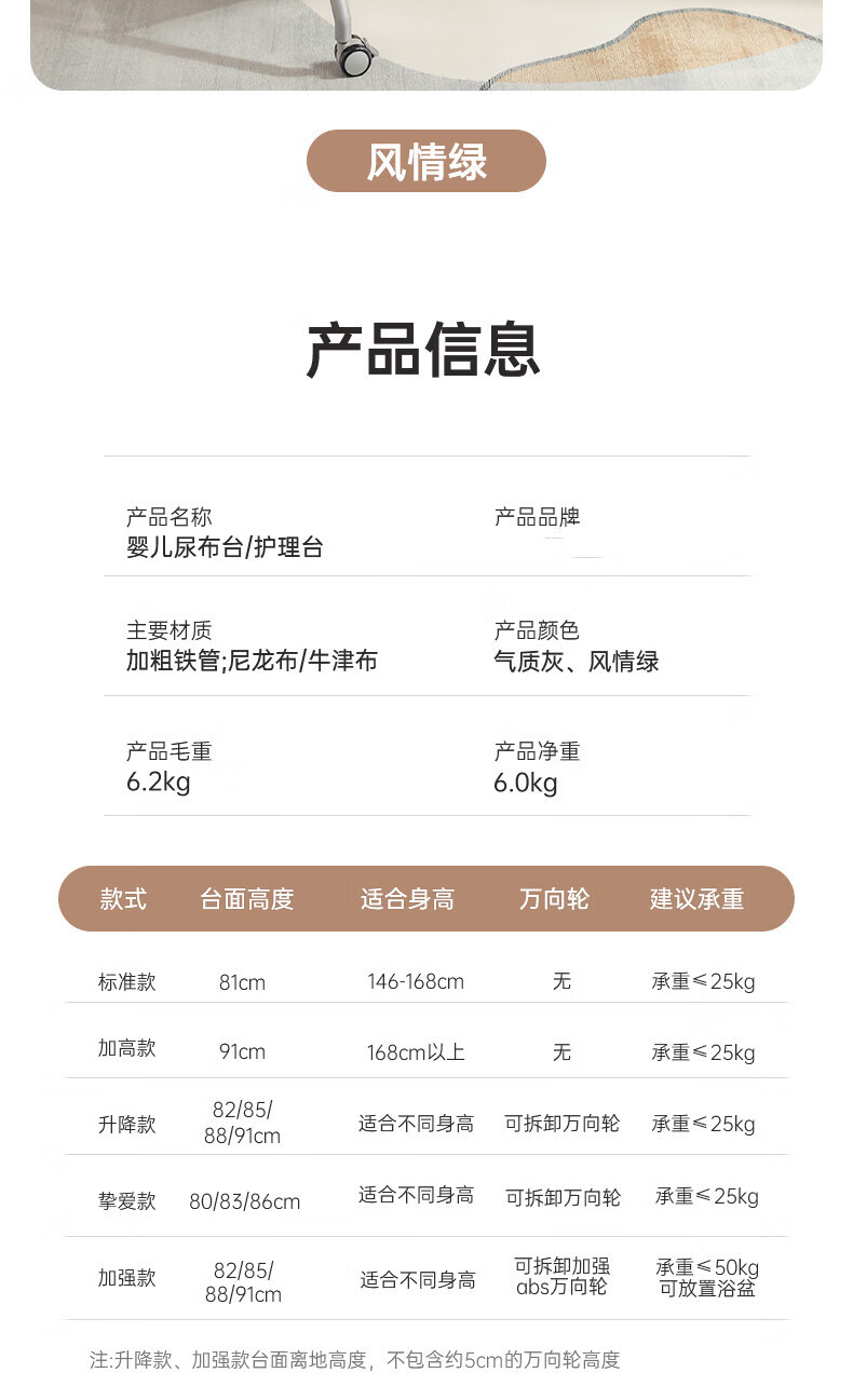 Diaper changing device, changing table, baby changing station, portable changing table, baby changing station, large size newborn standard (low) style, green, no storage basket [Figure