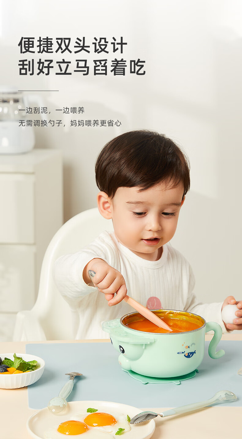 October Crystal Children's Silicone Soft Spoon, Baby Bowl, Spoon, Tableware, Neonatal Double End Use Soft Spoon, Baby Spoon, Supplementary Food Spoon, Neonatal Silicone Soft Spoon [Two Pack of Cute Rabbit Powder+Storage Box] [Image Price Brand Quotat...