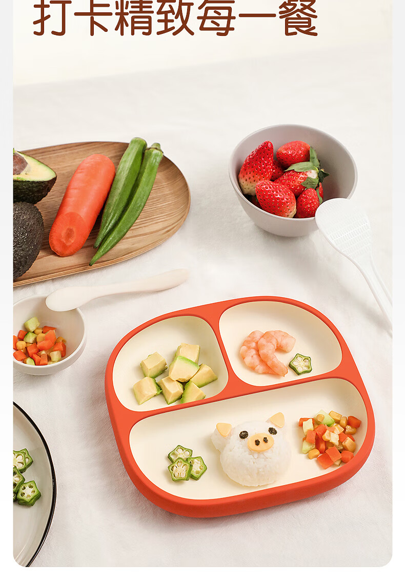 Shixi Suitable Fork Spoon for 12 Months Baby Eating Training Fork Baby Non Toxic Feeding Set Self feeding Rice Stainless Steel Liquid Silicone Plate Orange 【 Image Price Brand Quotation 】-