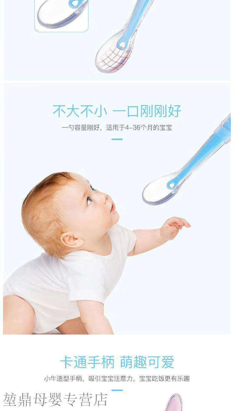 New born baby spoons under Beiqin's brand - Silicone for babies aged 0-3 months, 6-12 years - Supplementary food for babies - Water feeding, soft spoon, large size meal powder spoon, blue spoon, double ear bowl green [Image price, brand quotation]-