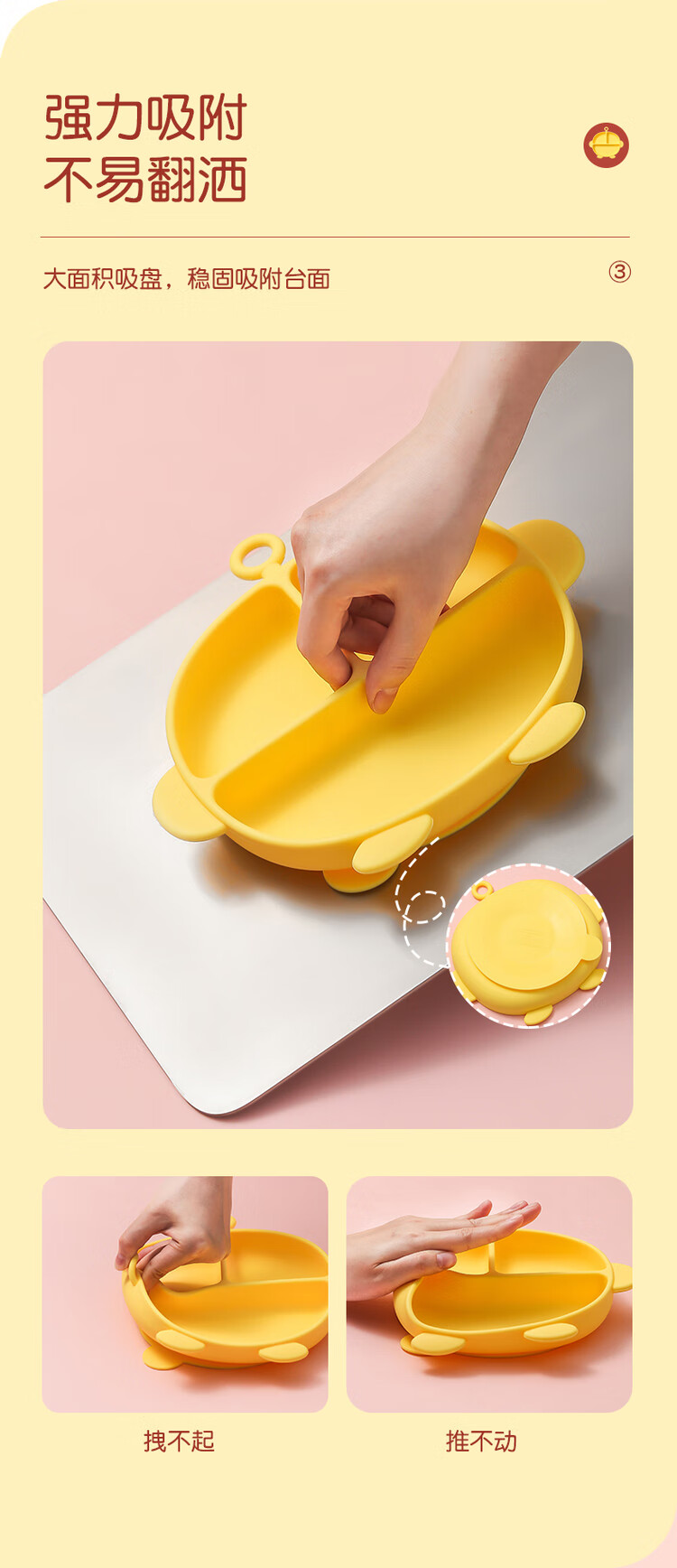 Shixi. Krabella. Dining Plate, Baby Silicone Straw Bowl, Suction Cup, Integrated Split Plate, Non toxic Baby Feeding Set A. Pink Dining Plate+Curvable Fork Spoon [Image Price Brand Quotation]-