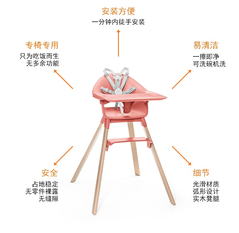STOKKE Europe imported Stokke Clikk Baby Highchair 6 months to 3 years old High Chair with Tray Dining Chair High Foot Chair Coral Pink Consultation Price 【 Image Price Brand Quotation 】-
