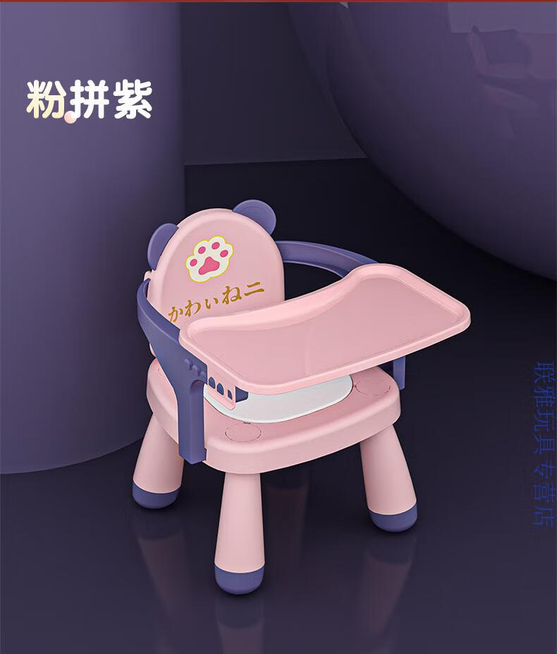 KUB Baby High chair Stool Children's chair Backrest chair Home baby call chair Small bench High chair with Tray Sit Pink Purple high feet - set (no plate)