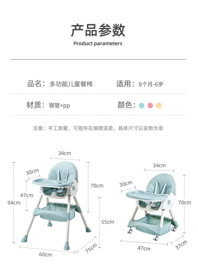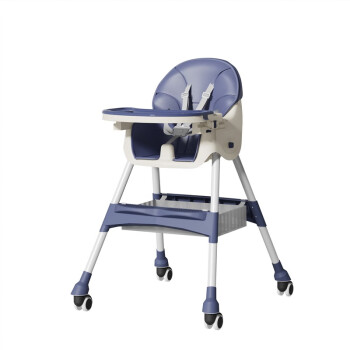 Huakelou Children's Stool for Eating, Liftable Baby Learning Chair, Dining Table, BB High Foot Seat, Portable Navy Blue Cushioned Wheels, and Double Layer Dining Plate [Image Price Brand Quotation]-