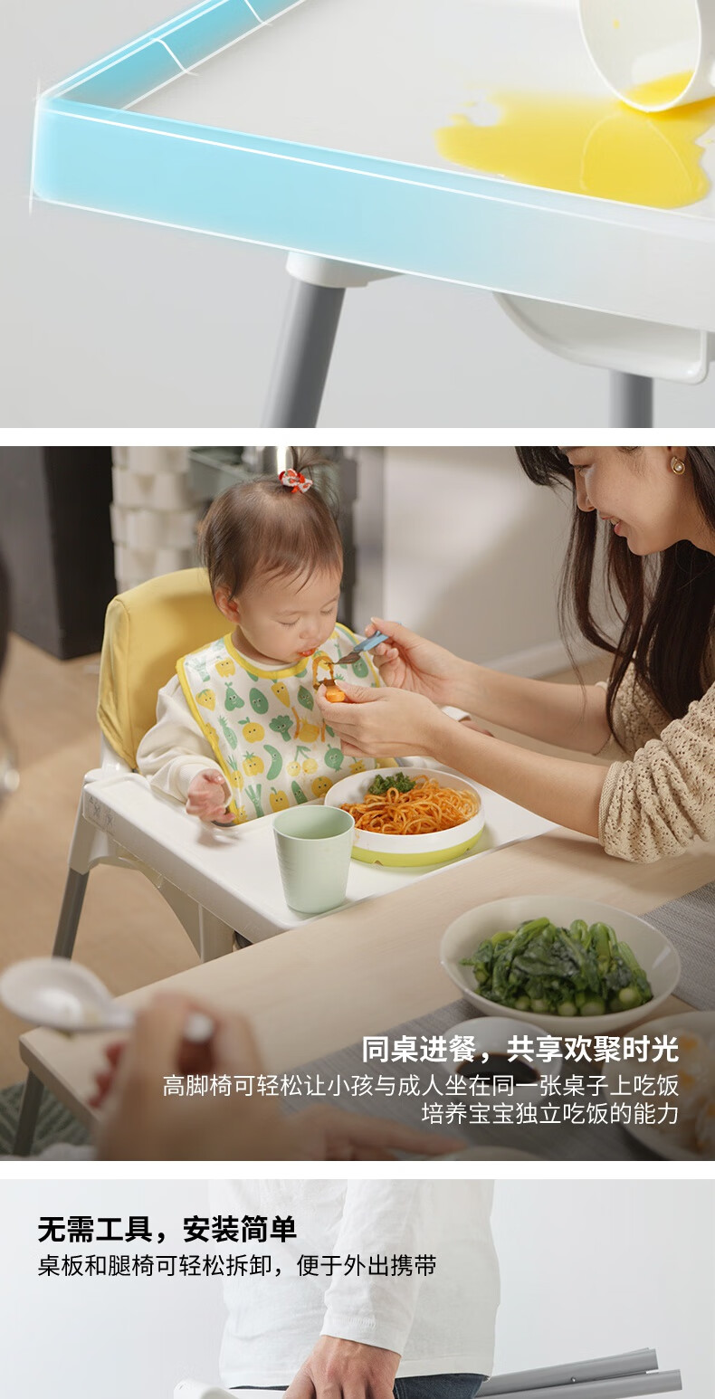 Babycare Andilo high legged baby chair baby eating growing household high chair with Tray portable child chair Baby blue (including tray) [picture price brand quotation]-